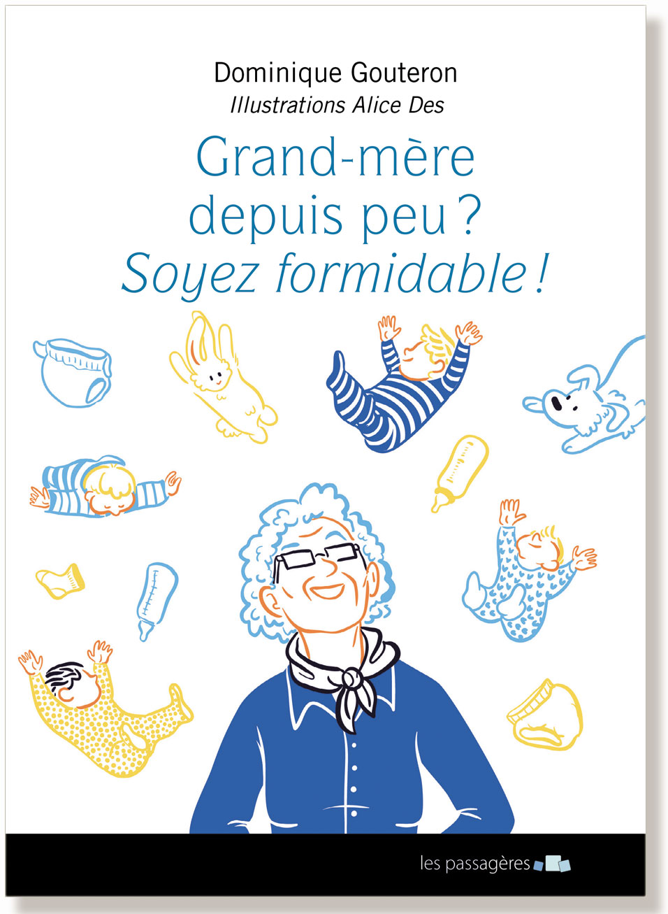 | Le texte Bien sûr, l’auteur adore ses petits enfants ! Mais après une vie professionnelle très active, elle aspirait à une retraite ponctuée de grasses matinées, de longs déjeuners avec ses amies, de voyages, d’expositions, de cours de peinture… C’était sans compter avec ses petits-enfants ! Les poussinous et les poussinettes débarquent bientôt tous les mercredis, pendant les petites et les grandes vacances. Ou à l’occasion d’une petite fièvre. Sans compter le lundi et le jeudi, à la sortie de la crèche ou de l’école, ou le dimanche après-midi pour laisser souffler les parents. Plus une minute à elle ! Épuisée, attendrie, souvent débordée, la nouvelle grand-mère se retrouve dotée de six bras et de quatre jambes. Elle a décidé d’en rire et de nous faire partager ses tribulations dans treize petites saynètes humoristiques. Sur un ton vif, drôle et alerte, Dominique Gouteron nous dresse le portrait de la nouvelle grand-mère, disponible malgré elle. Au fond, il s’agit d’un grand coup de chapeau à toutes les grands-mères, qui apportent à leurs petits-enfants un trésor inestimable : une enfance heureuse. Ce livre est agrémenté de treize illustrations originales, comme autant de sourires dans le texte. L'auteur Dominique Gouteron a géré une famille nombreuse devenue une tribu (14 enfants, beaux-enfants, petits-enfants) tout en menant une carrière professionnelle très exigeante, et en déménageant de nombreuses fois, double carrière oblige ! L’arrivée des petits-enfants a bouleversé le quotidien, pour le meilleur… et pour le plus drôle, comme l’exprime ce livre : à la fois argumenté, convaincant, et collant au plus près à la réalité des grands-mères d’aujourd’hui, débordées comme à 35 ans, pour des raisons différentes, à découvrir ici ! L’illustratrice Alice Des Récemment diplômée de Sciences-Po Paris, Alice Des devient illustratrice en 2012 en parallèle de ses études. Originaire de Wimille, une petite ville du bord de mer dans le Pas-de-Calais, elle étudie et travaille aujourd'hui à Paris en tant qu'agent d'illustrateurs à La Suite. Son style inspiré de la bande-dessinée lui permet de collaborer avec des clients divers (Sciences Po, Rock en Seine, Plante des Graines), mais aussi avec l'édition (La Jarre Magique en 2012, Vie de Merde en 2013) et des agences de communication (Shiva). Cette passionnée de voile et de romans graphiques puise son inspiration dans les petits instants du quotidien, et les personnes qu'elle rencontre. |